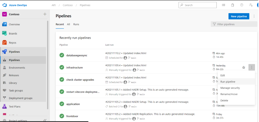 The infrastructure and application pipelines also manage the provisioning to secondary to apply the changes that are made to the primary environment.