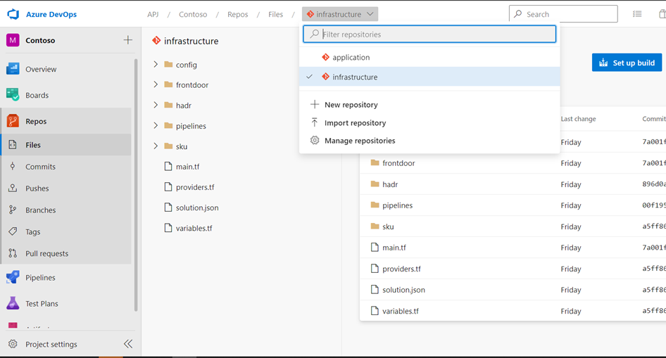 The infrastructure and application repositories are extended to support disaster recovery when setting up DR Basic Cold Standby.