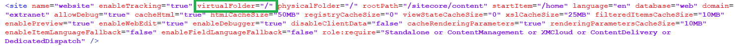 The following error might occur if the site configuration contains a value for virtualFolder settings that does not start with a slash '/' character: