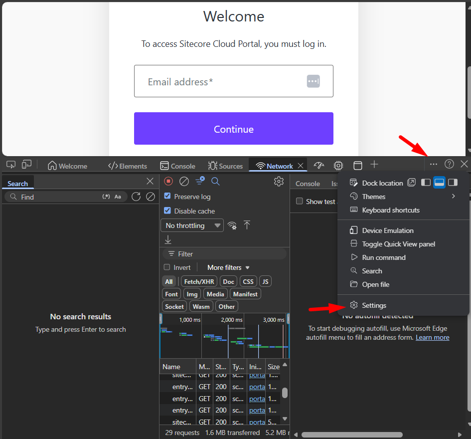To get a HAR file with sensitive data in Google Chrome or Microsoft Edge, enable a specific DevTools setting and then export the log file from the Network tab.
